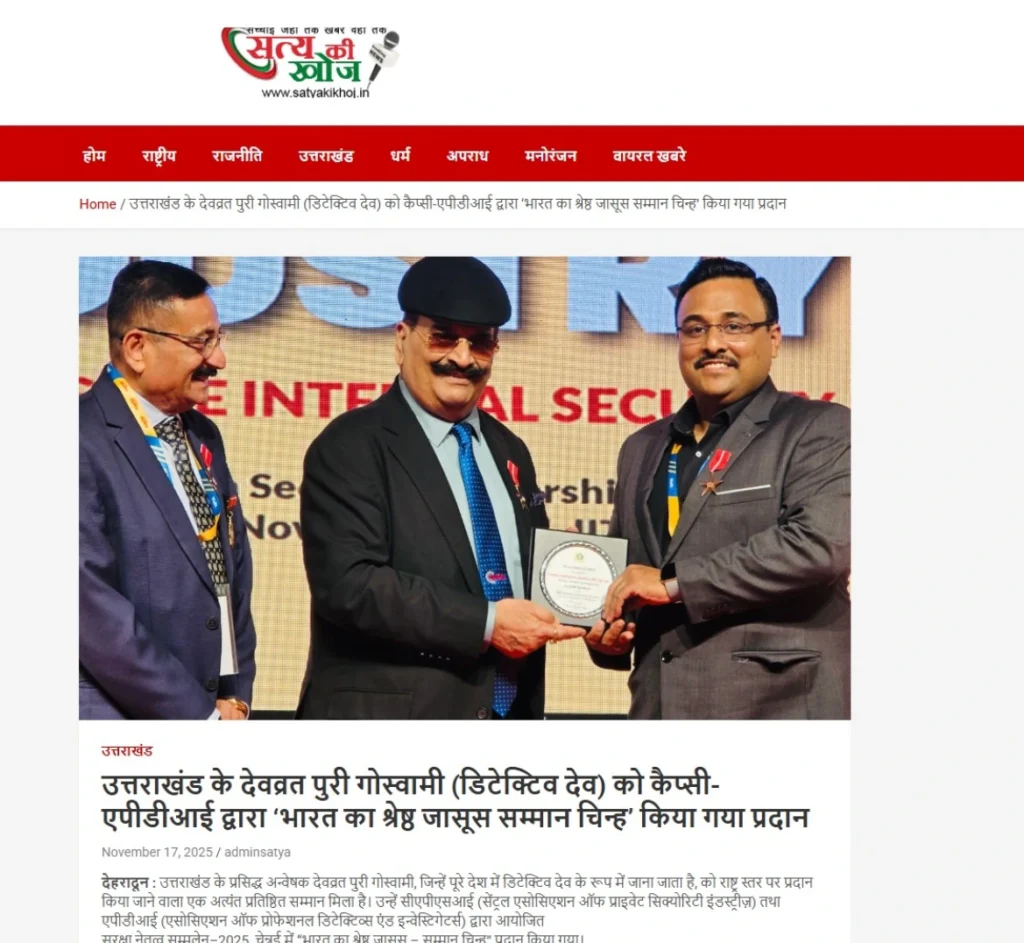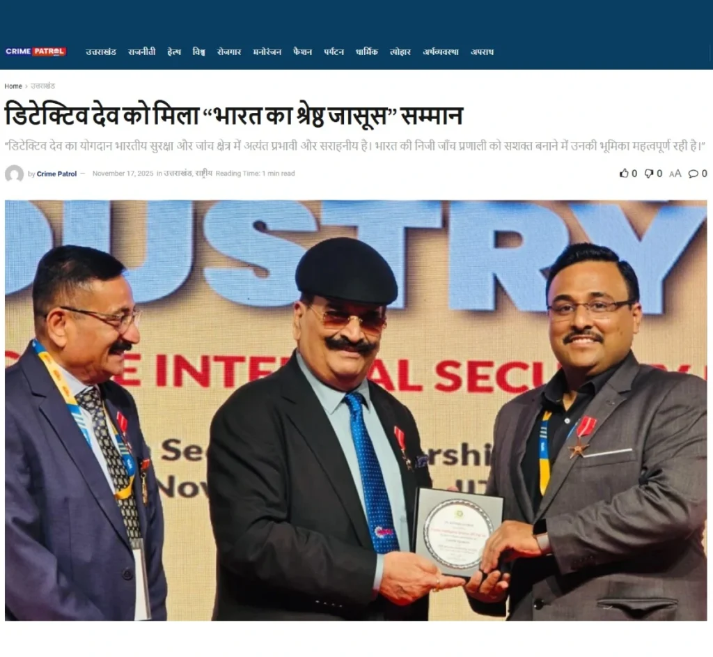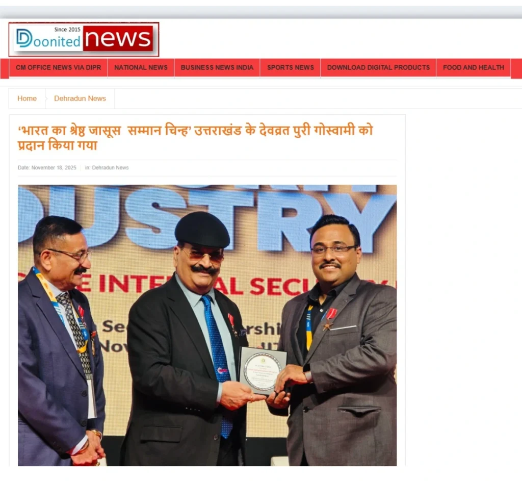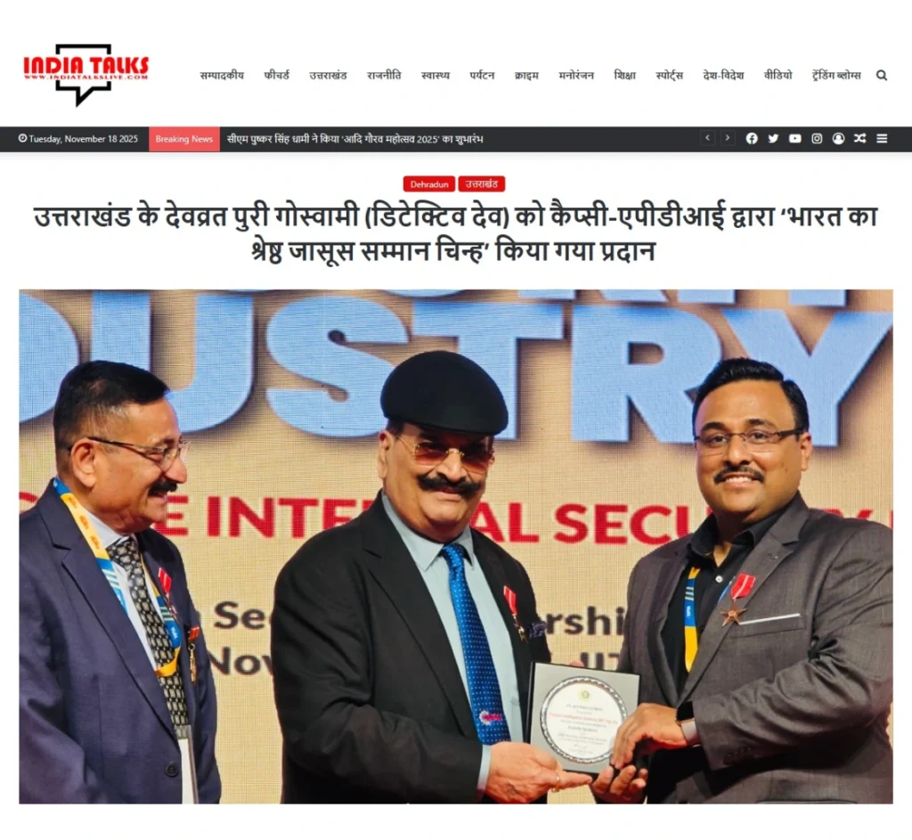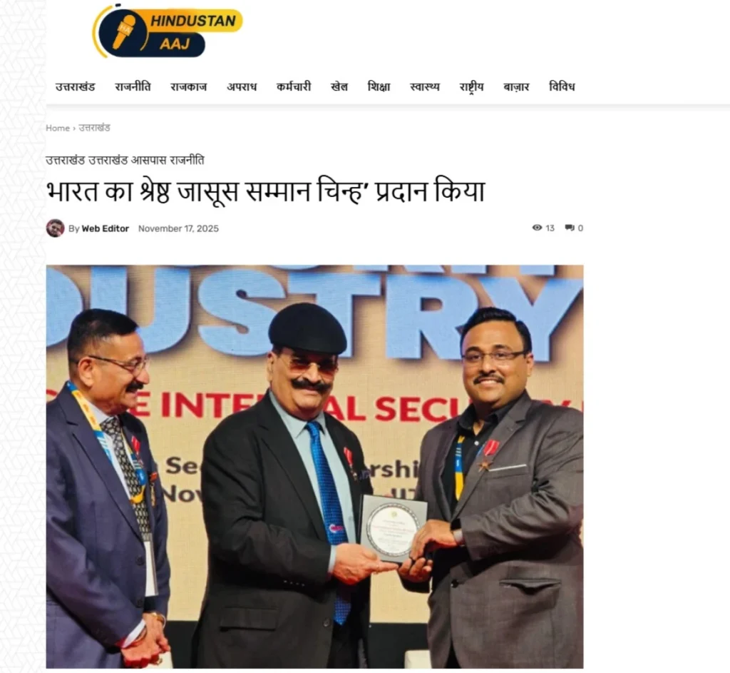 Press BADGE OF HONOUR BEST DETECTIVE IN INDIA, 2025 20th Security Leadership Summit At IITM Chennai on 15th November, 2025