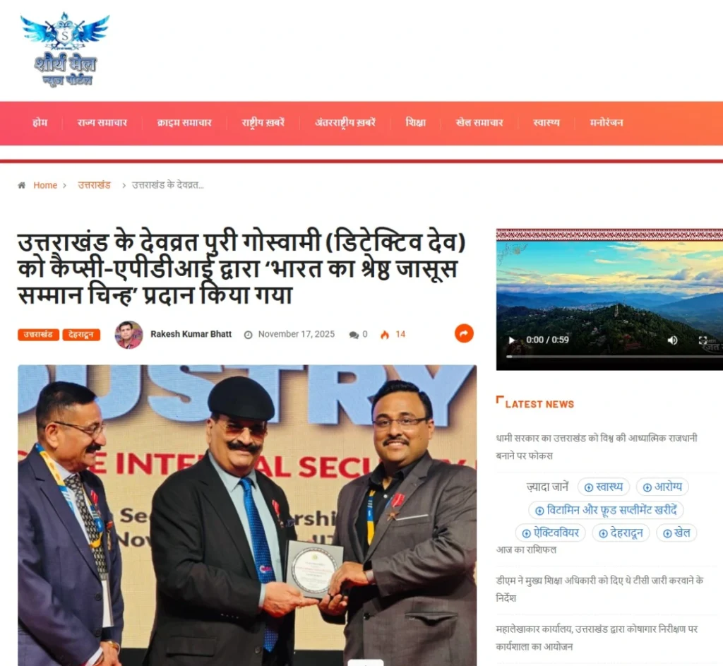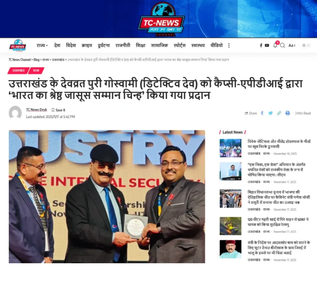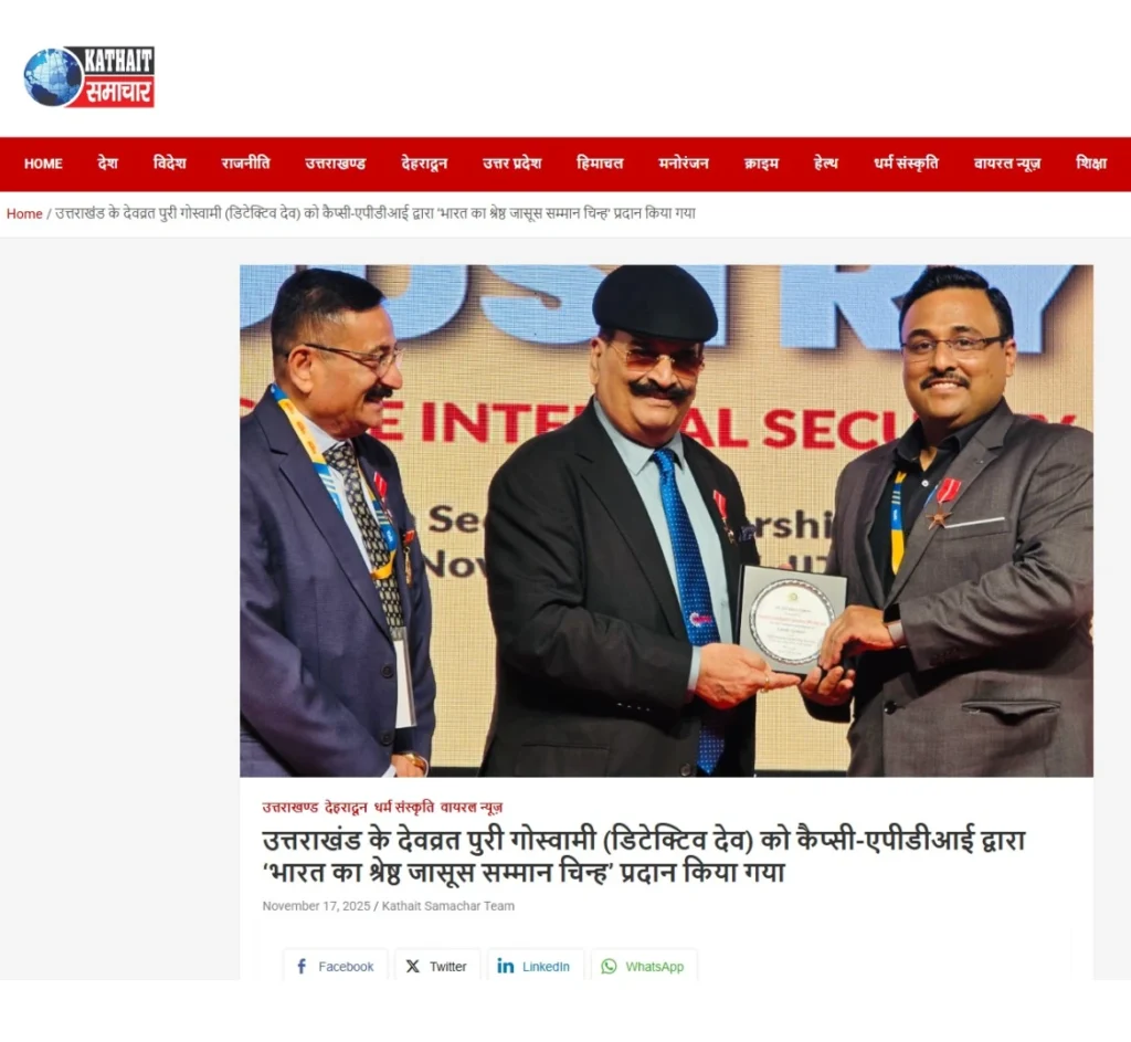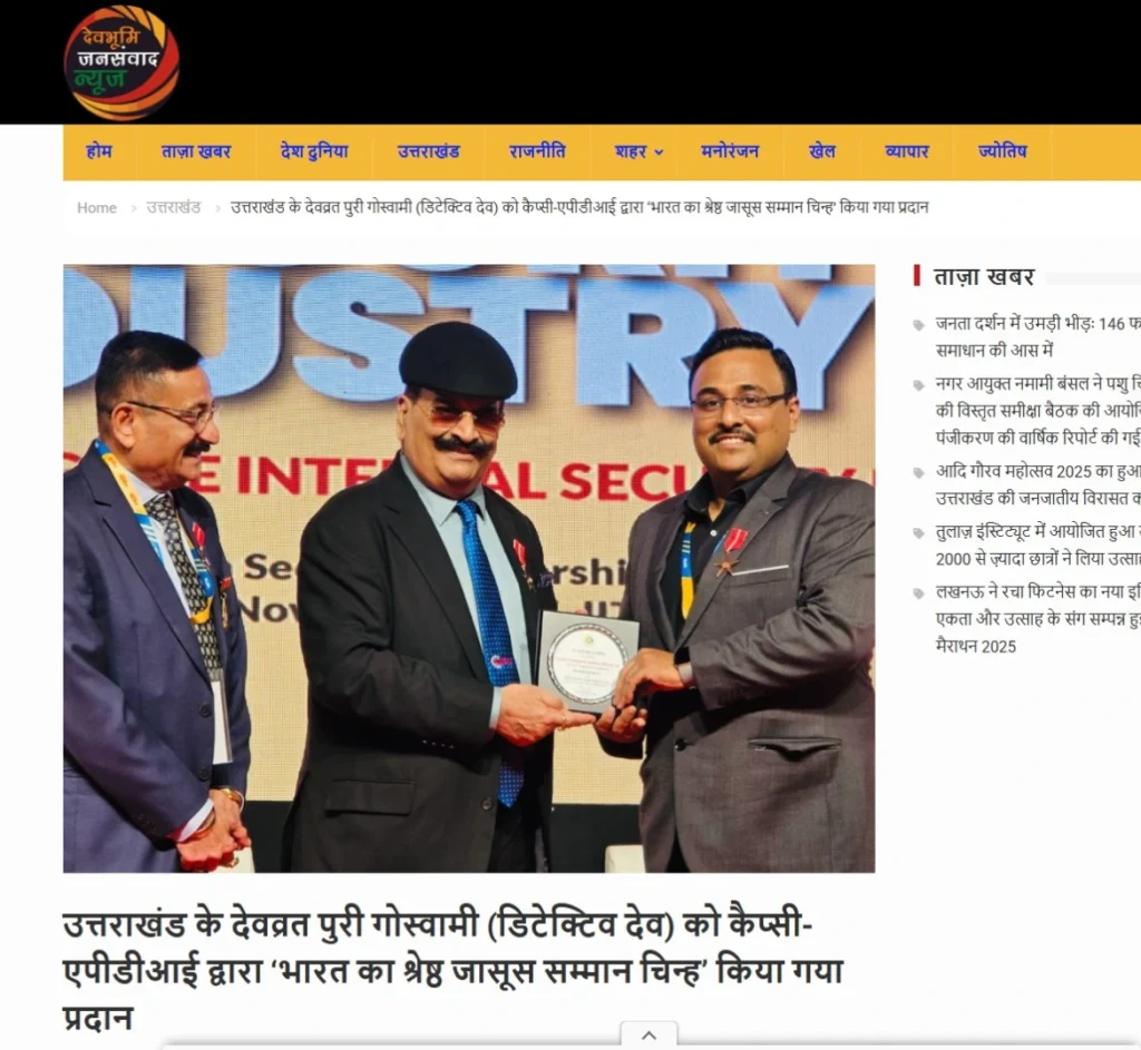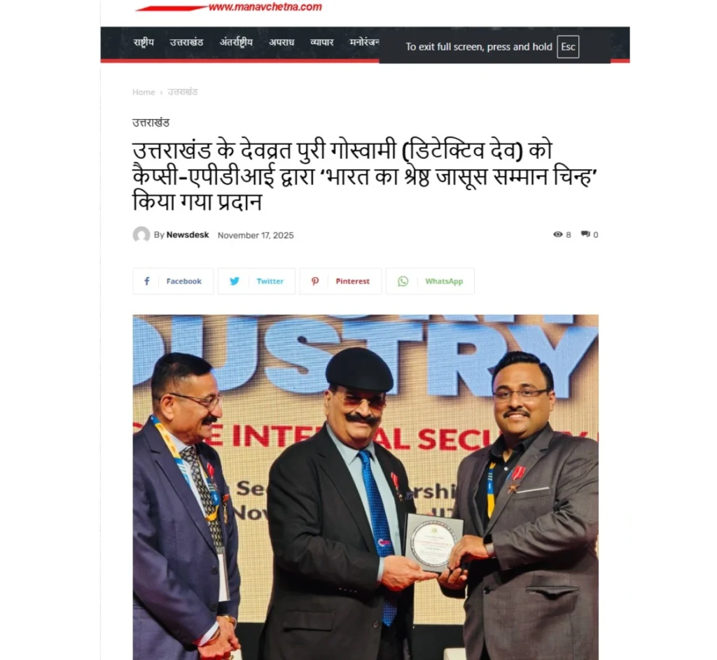 Press BADGE OF HONOUR BEST DETECTIVE IN INDIA, 2025 20th Security Leadership Summit At IITM Chennai on 15th November, 2025