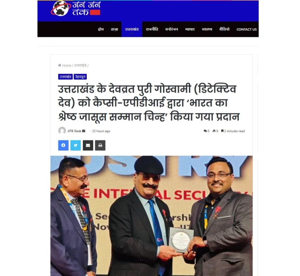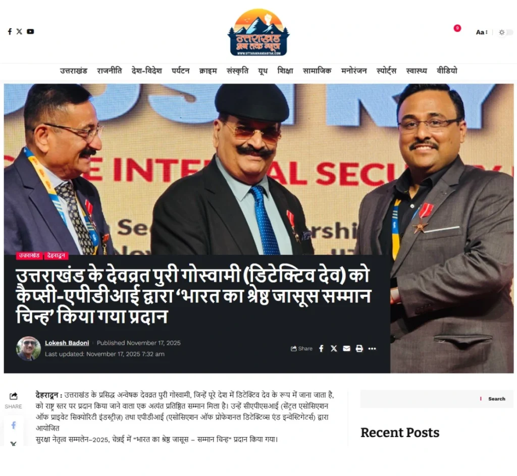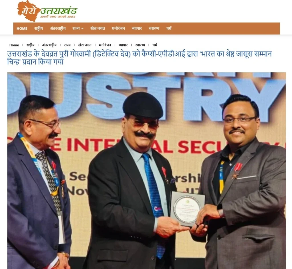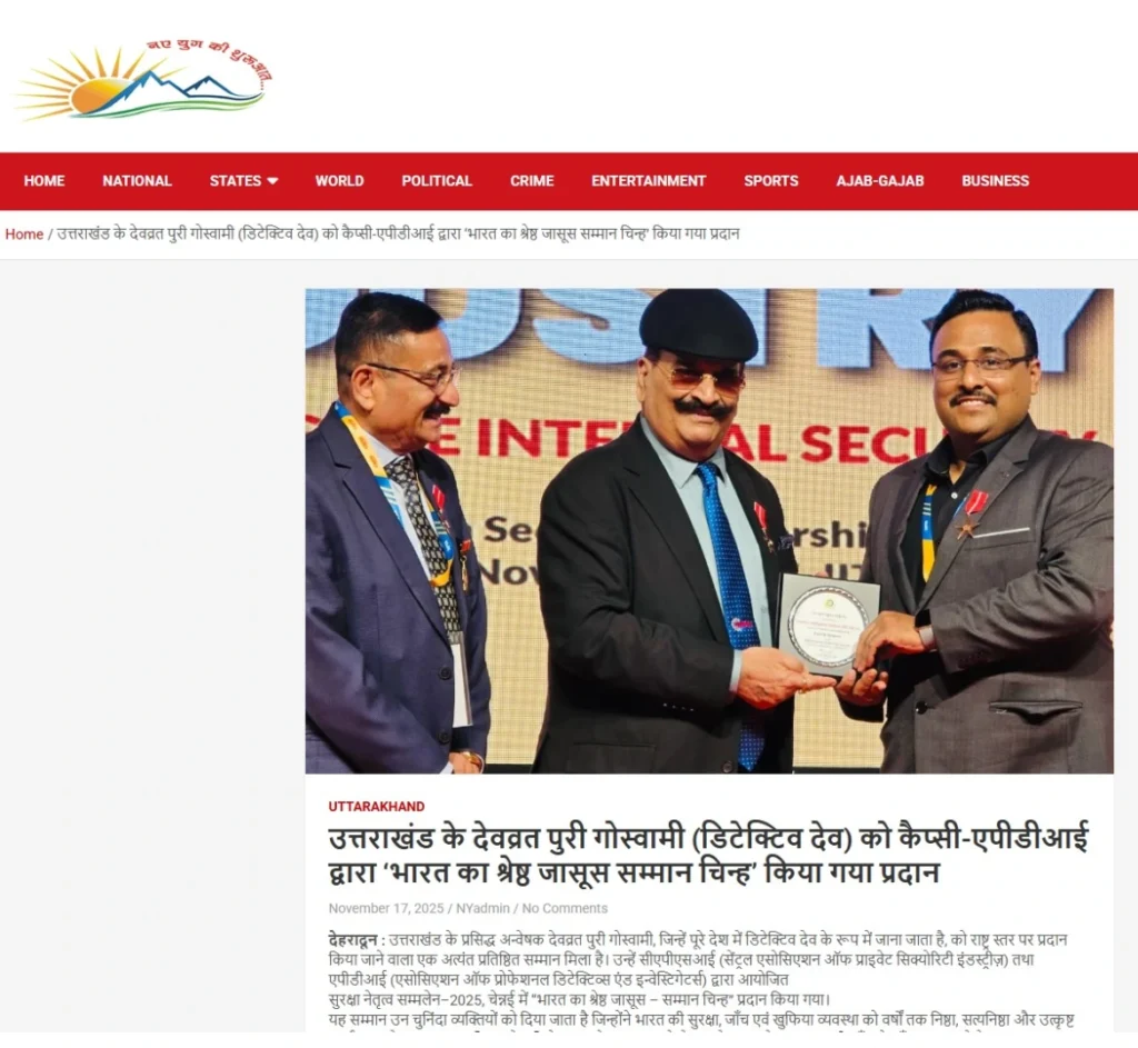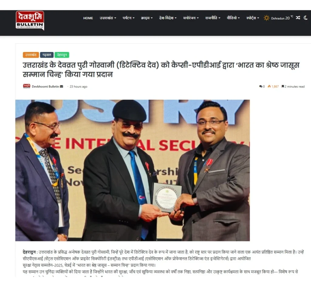 Press BADGE OF HONOUR BEST DETECTIVE IN INDIA, 2025 20th Security Leadership Summit At IITM Chennai on 15th November, 2025