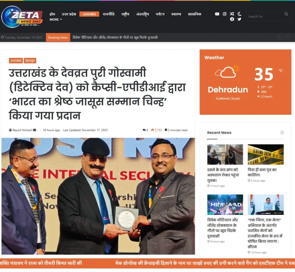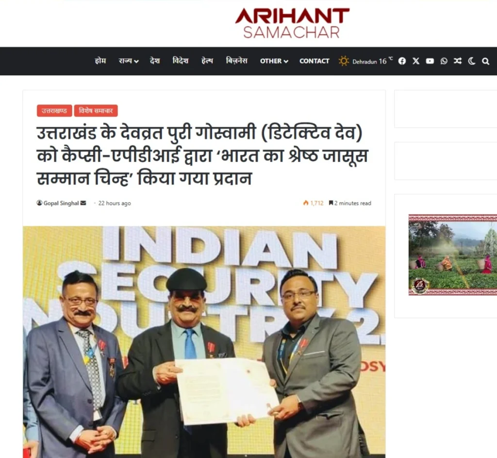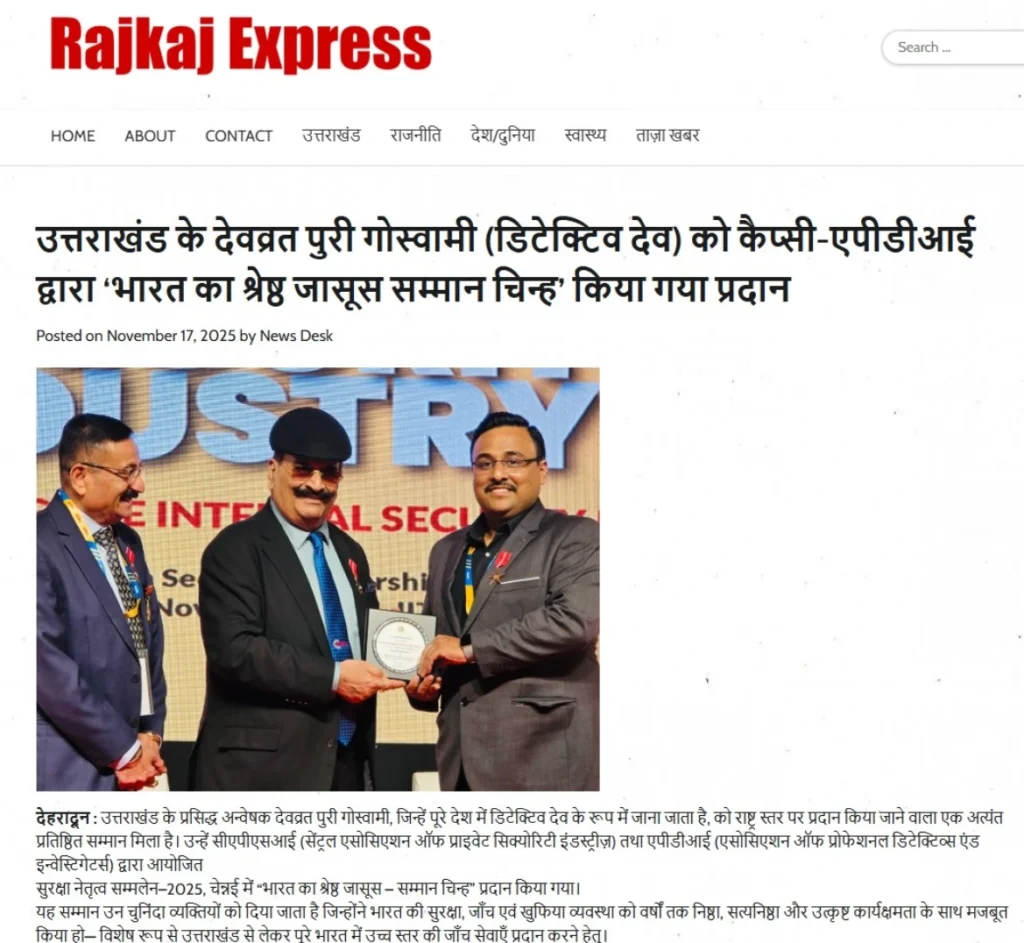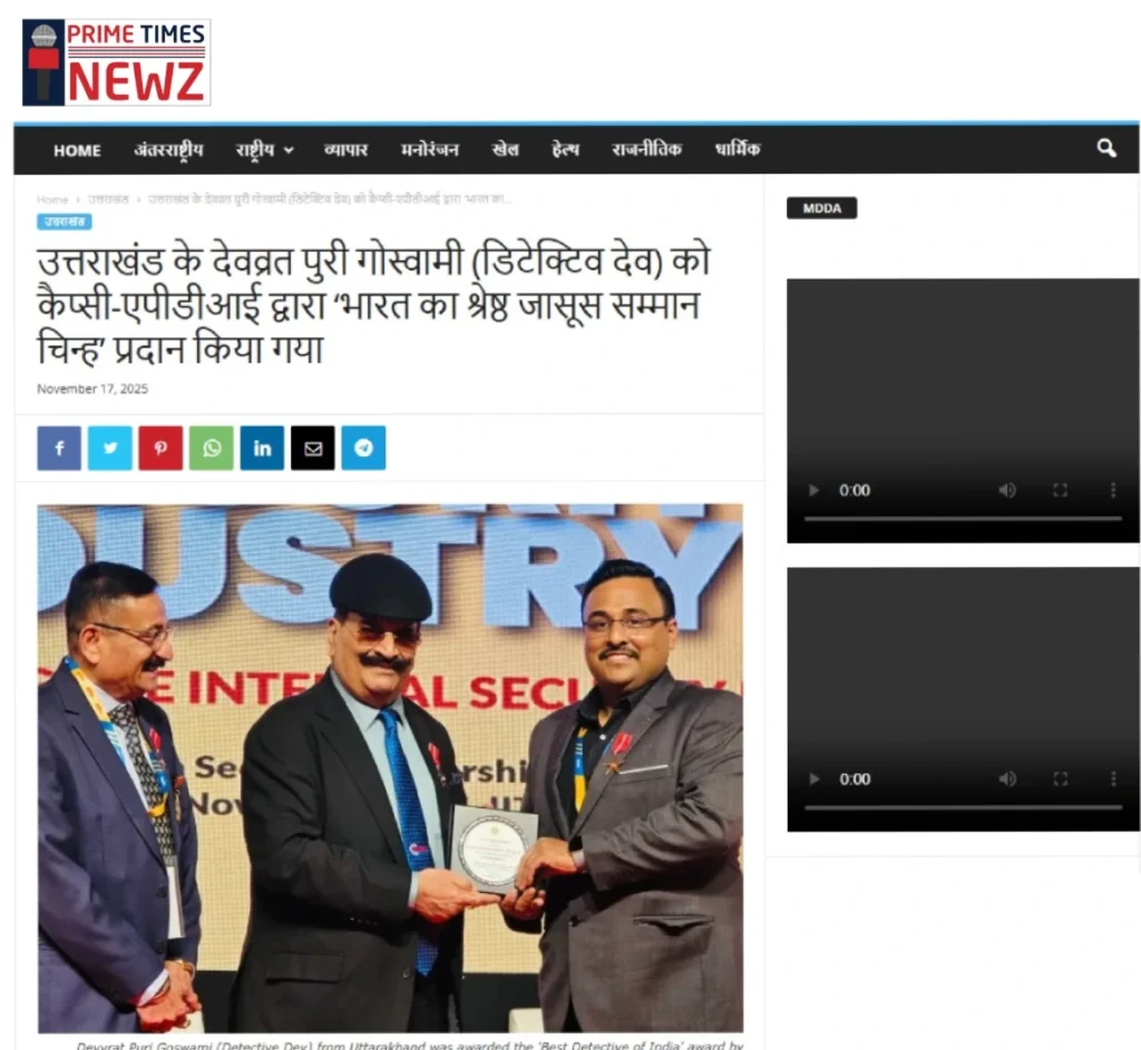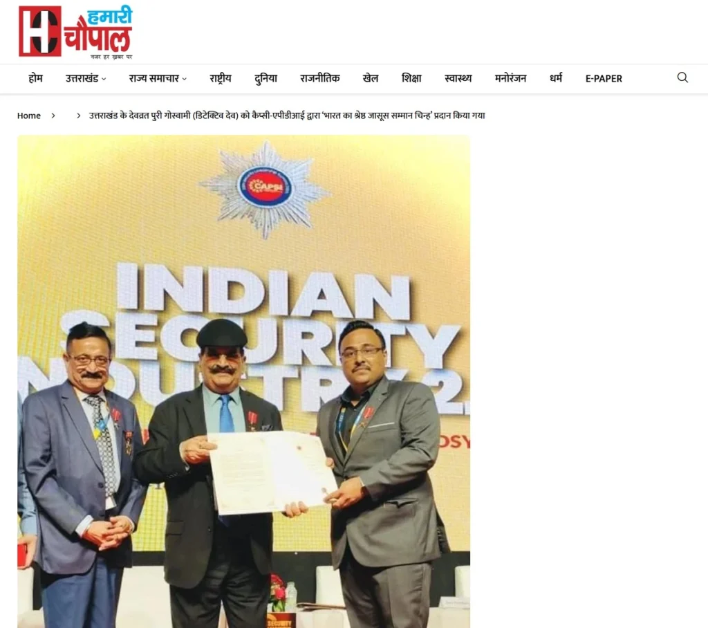 Press BADGE OF HONOUR BEST DETECTIVE IN INDIA, 2025 20th Security Leadership Summit At IITM Chennai on 15th November, 2025